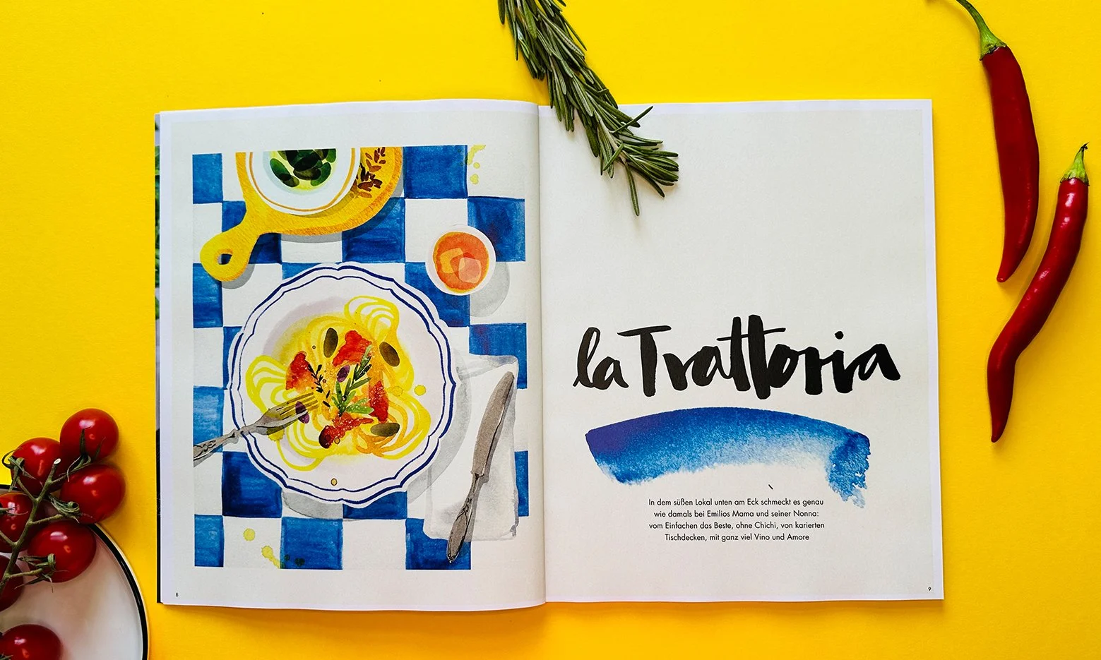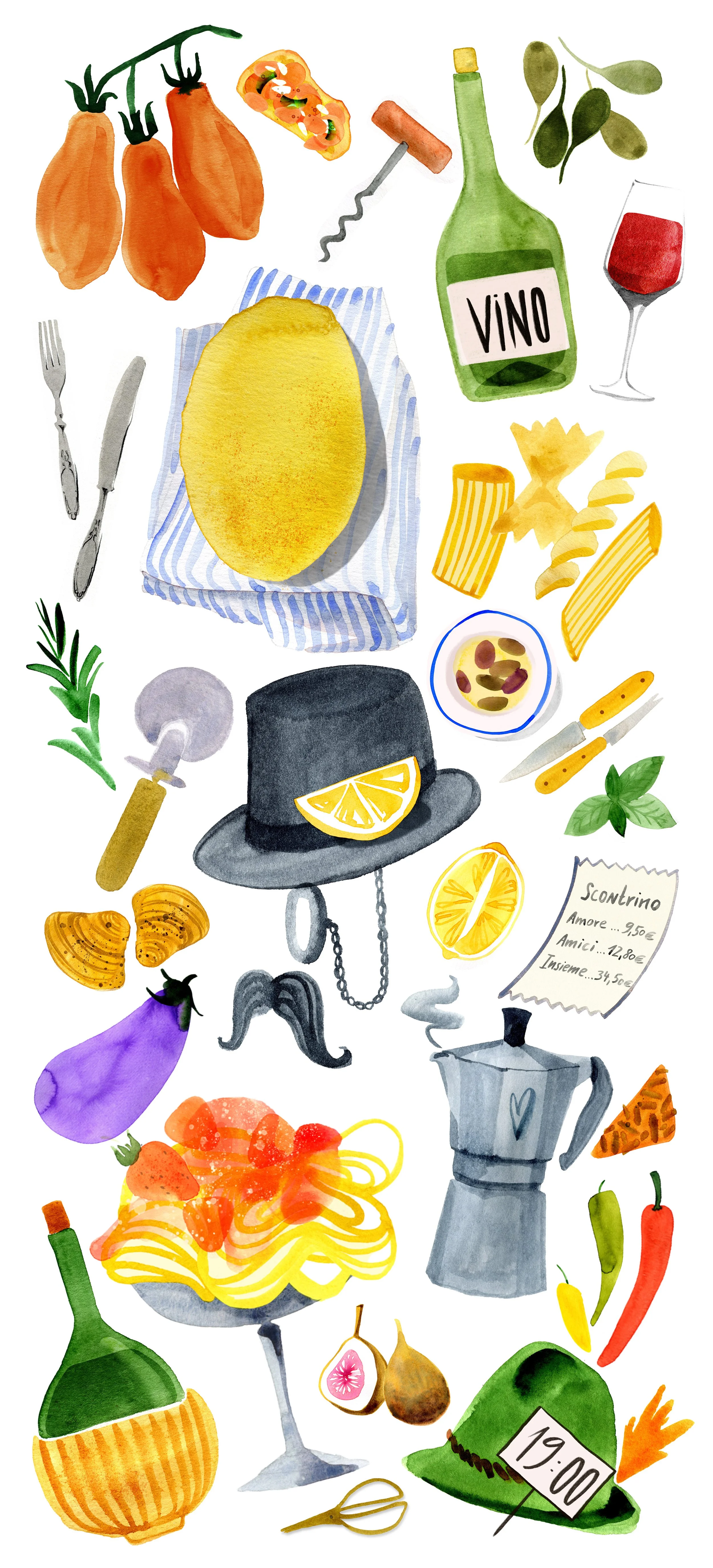 A series of watercolor illustrations featuring Italian recipes for “So Schmeckt” Magazine — celebrating the colors, flavors, and joy of Italian cuisine.